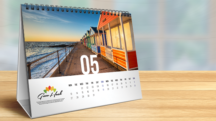 When you're looking to treat your customers to something special, our wholesale desk calendar printing is the way to go. Our wire-o desk calendars offer 12 months of high-value promotion with sturdy construction, an 18pt easel, and gorgeous 100# gloss stock.