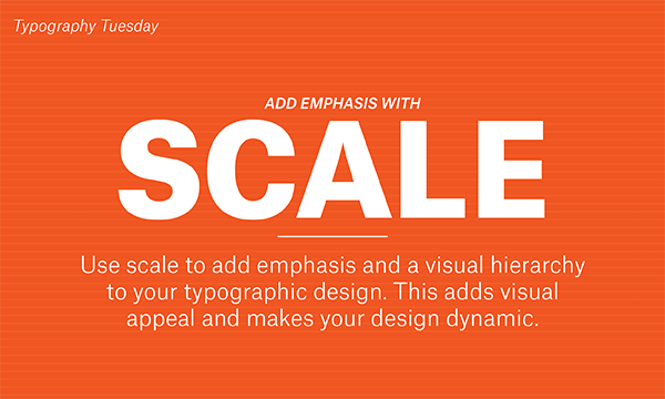 Apply scale to words that need proportionate emphasis. By dramatically increasing the size of a key word or two, you effectively grab the eye of the reader and communicate the core components of your message.